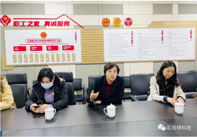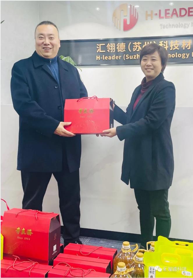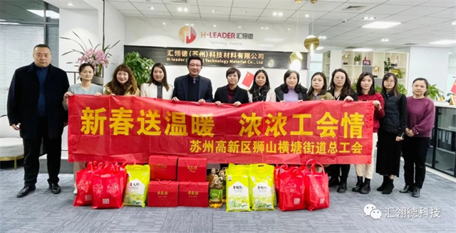 2022年1月26日,蘇州市高新區(qū)獅山街道、橫塘街道總工會(huì)啟動(dòng)了冬日送溫暖慰問活動(dòng)。獅山街道、橫塘街道黨工委副書記、橫塘街道政協(xié)工委主任洪璐一行5位領(lǐng)導(dǎo)冒著冬雨來到位于高新國(guó)際商務(wù)廣場(chǎng)26樓的匯翎德(蘇州)科技材料有限公司,帶著豐盛的春節(jié)禮品,看望了匯翎德公司的工會(huì)會(huì)員們。
